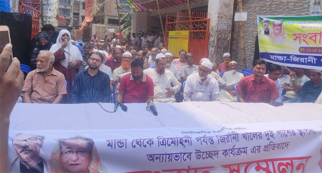 মিরর বাংলাদেশ : রাজধানীর মান্ডা থেকে ত্রিমোহনী পর্যন্ত জিরানী খালের দু’পাশের স্থাপনা অন্যায়ভাবে উচ্ছেদ কার্যক্রমের প্রতিবাদে সংবাদ সম্মেলন করেছে মান্ডা-জিরানী খালপাড়ের বাসিন্দারা।