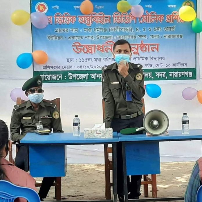 রোববার ফতুল্লার এনায়েতনগর ইউনিয়নের মধ্যধর্মঞ্জ গ্রামে ৪,৫ ও ৬ নং ওয়ার্ডে অস্ত্র বিহীন গ্রাম ভিত্তিক ভিডিপি মৌলিক প্রশিক্ষনের উদ্ভোধন করে প্রধান অতিথির বক্তব্যে তিনি এসব কথা বলেন।