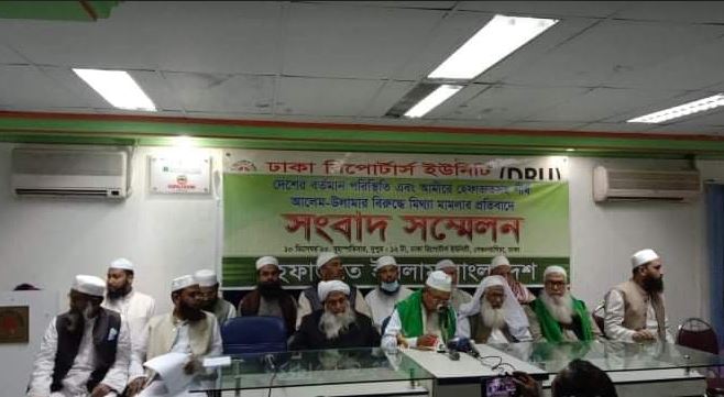 বৃহস্পতিবার দুপুরে ঢাকা রিপোর্টার্স ইউনিটিতে আয়োজিত এক সংবাদ সম্মেলনে তারা এ কথা বলেন। সংবাদ সম্মেলনে হেফাজতে ইসলামের মহাসচিব আল্লামা নূর হোসাইন কাসেমীর পক্ষে লিখিত বক্তব্য পাঠ করেন মাওলানা নূরুল ইসলাম জিহাদী।