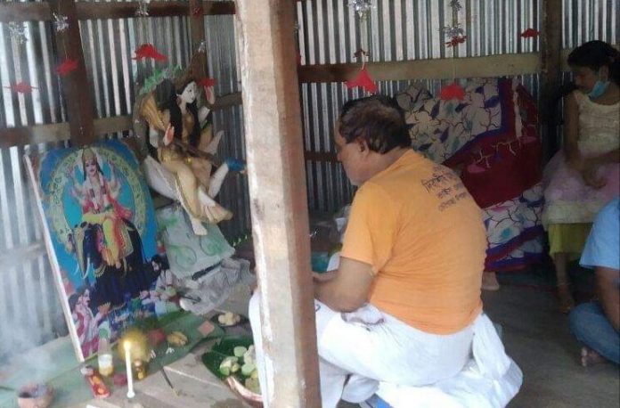 ১৭ ই (সেপ্টেম্বর) বৃহস্পতিবার বিকেলে ঝালকাঠী জেলার রাজাপুর উপজেলার জেলখাণা রোডস্থ নারায়ন চন্দ্র দে (কবিরাজ বাড়ীর) শ্রী শ্রী দূর্গা মন্দিরের আঙ্গিনায় এ পূজার আয়োজন করা হয়।
