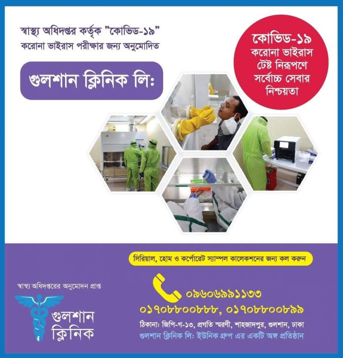 করোনা ভাইরাস টেষ্ট গুলশান ক্লিনিকের যাত্রা শুরু