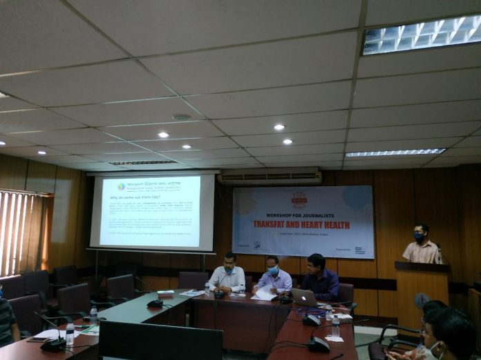 আয়োজকদের পক্ষ থেকে জানানো হয় বিশ্বস্বাস্থ্য সংস্থার সর্বশেষ তথ্য অনুযায়ী ট্রান্সফ্যাটজনিত হৃদরোগে মৃত্যুর সর্বাধিক ঝুঁকিপূর্ণ ১৫টি দেশের তালিকায় রয়েছে বাংলাদেশ। ট্রান্সফ্যাটের প্রধান উৎস পারশিয়ালি হাইড্রোজেনেটেড অয়েল (পিএইচও) যা বাংলাদেশে ডালডা বা বনস্পতি ঘি নামে অধিক পরিচিত। এতে আরো জানান হয়, স¤প্রতি ঢাকার শীর্ষস্থানীয় পিএইচও ব্র্যান্ডসমূহের নমুনার ৯২ শতাংশে ডব্লিউএইচও সুপারিশকৃত ২% মাত্রার চেয়ে বেশি ট্রান্সফ্যাট (ট্রান্স ফ্যাটি এসিড) পেয়েছেন ন্যাশনাল হার্ট ফাউন্ডেশন হসপিটাল অ্যান্ড রিসার্চ ইন্সটিটিউট এর গবেষকগণ। গবেষণায় প্রতি ১০০ গ্রাম পিএইচও নমুনায় সর্বোচ্চ ২০.৯ গ্রাম পর্যন্ত ট্রান্সফ্যাট এর উপস্থিতি লক্ষ করা গেছে, যা ডবিøউএইচও এর সুপারিশকৃত মাত্রার তুলনায় ১০ গুণেরও বেশি। ভেজিটেবল অয়েলের সাথে হাইড্রোজেন যুক্ত করলে তেল জমে যায় এবং ট্রান্সফ্যাট উৎপন্ন করে। এই পারশিয়াল হাইড্রোজেনেটেড অয়েল দেশে ডালডা বা বনস্পতি ঘি নামে পরিচিত।