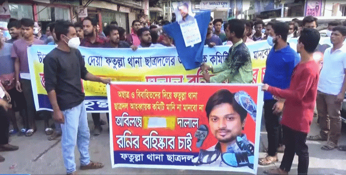 স্বজনপ্রীতি ও অর্থ বানিজ্য সহ নানা অনৈতিক কর্মকান্ডের অভিযোগ এনে নারায়ণগঞ্জে জেলা ছাত্রদলের সভাপতি মশিউর রহমান রনির বহি:স্কার দাবিতে বিক্ষোভ করেছে ফতুল্লা থানা ছাত্রদল।