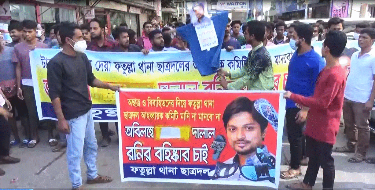 নারায়ণগঞ্জ ছাত্রদল সভাপতির কুশপুত্তলিকা দাহ