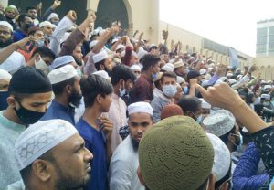 জানা গেছে জুমার নামাজের পর মোনাজাত শেষ হলে বিক্ষোভকারীরা বায়তুল মোকাররমের উত্তর গেটের সিঁড়িতে অবস্থান নিয়ে স্লোগান দিতে শুরু করে। এ সময় ‘লড়াই লড়াই লড়াই চাই, লড়াই করে বাঁচতে চাই’, ‘দুনিয়ার মুসলিম এক হও’ স্লোগান দেন তারা। এ সময় পুলিশ তাদের চলে যেতে বলে। প্রায় আধা ঘণ্টা স্লোগান দেয়ার পর সিঁড়ি থেকে নেমে যান বিক্ষোভকারীরা।
