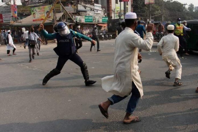 জানা গেছে, জুমার নামাজের পর মুসল্লিদের একটি দল মিছিল বের করে। এক পর্যায়ে মিছিলটি বায়তুল মোকাররম থেকে পল্টনের দিকে এলে আগে থেকে অবস্থান নেয়া পুলিশ বাধা দেয়। এ সময় দুই পক্ষের মধ্যে ব্যাপক উত্তেজনার সৃষ্টি হয়। পুলিশের বাধা উপেক্ষা করে মুসল্লিরা মিছিল নিয়ে এগিয়ে যাওয়ার চেষ্টা করে। এসময় পুলিশ তাদের ওপর লাঠিচার্জ করে। মুসল্লিরাও ইট পাটকেল ছোঁড়ে।