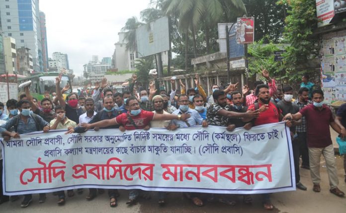 করোনাভাইরাসের কারণে সৌদি আরব থেকে ছুটিতে দেশে এসে আটকে পড়েছেন অনেক প্রবাসী। ফ্লাইট বন্ধ থাকায় আটকেপড়া কেউ সৌদিতে যেতে পারেননি। করোনার আগে যারা দেশে এসেছিলেন, যেতে না পেরে অনেকের ভিসা ও আকামার মেয়াদ ইতিমধ্যে শেষ হয়েছে। আগামী ৩০ সেপ্টেম্বরের মধ্যে অনেকের ভিসা, আকামার মেয়াদ শেষ হবে। এই সময়ের মধ্যে যেতে না পারলে অনেকে কাজ হারাবেন। কিন্তু যাওয়ার টিকিট না পেয়ে বিপাকে পড়েছেন তারা।