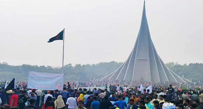 মূল শহীদ বেদী ভরে উঠে ফুলে ফুলে। লাল সবুজের পতাকায় ছেয়ে যায় স্মৃতিসৌধ প্রাঙ্গণ। মানুষের হাতে হাতে ফুল আর পরনে ছিল লাল সবুজের ছোয়া। সারিবদ্ধভাবে একে একে শ্রদ্ধা জানাতে থাকেন সকলেই। স্মৃতিসৌধ এলাকা পরিণত হয় জনসমূদ্রে। বিভিন্ন শিক্ষা প্রতিষ্ঠানের শিক্ষার্থীদের পদচারনায় মুখরিত হয়ে উঠে স্মৃতিসৌধ এলাকা। চারিদিক থেকে আসা মানুষের ঢল মিশতে থাকে স্মৃতিসৌধ প্রাঙ্গণে।