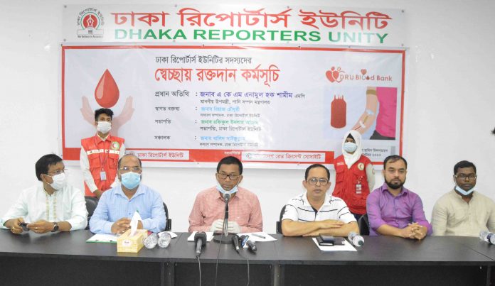 মিরর বাংলাদেশ : ঢাকা রিপোর্টার্স ইউনিটির উদ্যোগে ও বাংলাদেশ রেড ক্রিসেন্ট সোসাইটির সহযোগিতায় আজ ২৫ সেপ্টেম্বর শুক্রবার ডিআরইউ নসরুল হামিদ মিলনায়তনে দিনব্যাপী স্বেচ্ছায় রক্তদান কর্মসূচী অনুষ্ঠিত হয়। সকালে এ উপলক্ষে আয়োজিত এক অনুষ্ঠানে প্রধান অতিথি হিসেবে উপস্থিত থেকে কর্মসূচীর উদ্বোধন করেন পানি সম্পদ মন্ত্রণালয়ের মাননীয় উপমন্ত্রী এ কে এম এনামুল হক শামীম এমপি।