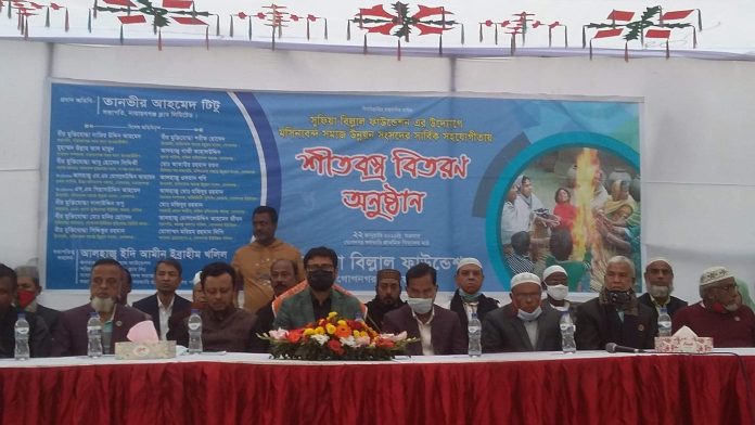 শুক্রবার (২২ জানুয়ারী) বিকাল ৪ টায় সুফিয়া বিল্লাল ফাউন্ডেশন এর কর্নধার ও নারায়নগঞ্জ ক্লাব লিমিটেডের পরিচালক আলহাজ্ব ইদি আমীন ইব্রাহিম খলিলের সভাপতিত্বে শীতবস্ত্র বিতরণ অনুষ্ঠান অনুষ্ঠিত হয়। আহমেদ বীর মুক্তিযুদ্ধা নাজির উদ্দিন আহমেদ।