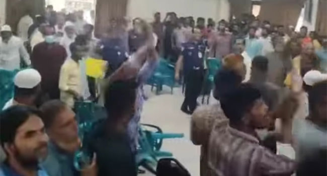 রির্টার্নিং অফিসারের সামনে দুই মেয়র  প্রার্থীর সমর্থকদের মধ্যে  তুমুল মারামারি,ভাংচুর, শোকজ