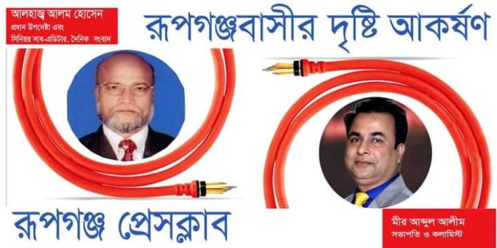 রূপগঞ্জ প্রেসক্লাব একটি স্বনামধন্য প্রতিষ্ঠান। প্রতিষ্ঠানটি সভাপতির দায়িত্বে আছেন দেশের প্রখ্যাত কলামিস্ট মীর আব্দুল আলীম। যিনি প্রতিনিয়ত দেশ-বিদেশের পত্র পত্রিকাগুলোতে সুনামের সাথে কলাম লিখেছেন। আন্তর্জাতিক শান্তি নিকেতন পদকসহ বহু পদক পেয়েছেন তিনি। উপদেষ্টা মন্ডলীতে রয়েছেন প্রবীণ সাংবাদিক দৈনিক সংবাদ এর সিনিয়র সহ সম্পাদক আলম হোসেন, রূপগঞ্জের প্রিয় মানুষ বাংলাদেশ প্রতিদিনের চিফ রিপোর্টার মনজুর হোসেন, প্রবীণ সাংবাদিক মনির হোসেন মনু এবং মাসুদ করিম। ক্লাবটি জাতীয় এবং স্থানীয় ৬৭জন সাংবাদিকদের সমন্বয়ে নিয়মতান্ত্রিকভাবে পরিচালিত হয়ে আসছে। বহুবছর সকল সাংবাদিকদের একত্রে চলা প্রতিষ্ঠানটি বরাবরই সন্ত্রাসী এবং রাজনৈতিক প্রতিহিংসার শিকার হয়েছে। ভাঙ্গনের চেষ্টা করা হয়েছে বহু বারবার। শত ঝড় প্রতিকূলতার মধ্যেও সাংবাদিকরা সুসংগঠিত রয়েছে। এটি দেশের মধ্যে আঞ্চলিক ক্লাব হিসেবে বিরল ঘটনা। ক্লাবটি এখনো রূপগঞ্জের অসহায় মানুষের আশ্রয় স্থল। যা রূপগঞ্জবাসি অবহিত আছেন। ক্লাবের সভাপতির কাছে অসহায় নির্যাতিত মানুষ সবসময়ই আশ্রয় পেয়েছেন। এ ক্লাবের সদস্যরা শুধু লেখা লেখির মধ্যেই সীমাবদ্ধ থাকেন না। সামাজিক আন্দোলন শীতলক্ষ্যা বাঁচাও আন্দোলন, বৃক্ষরোপণ, বাল্যবিবাহ, মাদক বিরোধী বিভিন্ন কর্মকাণ্ডে রূপগঞ্জবাসি এবং দেশবাসীর দৃষ্টি আর্কষণ করতে সক্ষম হয়েছে। সকল নিউজ অত্যন্ত সাহসিকতার সাথে দৈনিক যুগান্তর, জনকন্ঠ, সমকাল, ইনকিলাব, বাংলাদেশ প্রতিদিন, কালেরকণ্ঠসহ সকল পত্রিকা এবং টিভি চ্যানেলগুলোতে প্রচার প্রকাশ করেছেন রূপগঞ্জের সাংবাদিকরা। যার কারণে অনেকের চক্ষুশূল এই প্রেসক্লাব। ক্লাবের কোন সদস্য অনিয়মে জড়িত থাকলে সাময়িক বহিষ্কার এবং স্থায়ী বহিষ্কারও হয়েছেন। এদের দু’একজন চিহ্নিত সন্ত্রাসী মদদদাতাদের ইশারায় ক্লাবের সুনাম নষ্ট করতে ফেসবুকে অপপ্রচার চালাচ্ছে যা আমাদের দৃষ্টিতে এসেছে। ক্লাবের ৬৭ জন সাংবাদিক এখনো ক্লাবটি প্রতি আস্থাশীল থেকে তাদের লেখালেখির কার্যক্রম চালিয়ে যাচ্ছেন। সাংবাদিকতার ব্যাপারে সাংগঠনিক কর্মকাণ্ড ছাড়া সংবাদ প্রকাশে কোন প্রকার হস্তক্ষেপ নেই সদস্যদের উপর। একজন বহিস্কৃত সাংবাদিক জনাব মকবুল হোসেন ভূঁইয়া (যিনি পূর্বে রূপগঞ্জ প্রেসক্লাবের সহ-সভাপতি দায়িত্বে ছিলেন) আরো তিনজন ক্লাবের সদস্য নন কিন্তু ক্লাবে আসা-যাওয়া করতেন দুলাল হোসেন ভূঁইয়া (কোন পত্রিকায় কর্মরত নন বলেই জানি), রাসেল মাহমুদ(ভোরের ডাক) এবং রুবেল মাহমুদ (সময়ে আলো) ফেসবুক লাইভে এসে বলেছেন তারা স্বাধীন সাংবাদিকতা করতে পারেননি। আপনারা জানেন এখন সংবাদ প্রেরণের মাধ্যম হলো ই-মেইল। যারা বিষয়টি বিশ্বাসযোগ্য মনে করছেন তাদ