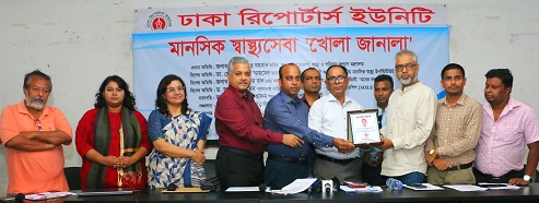বাংলাদেশে প্রথমবারের মতো সাংবাদিকদের জন্য পেশাগত মানসিক চাপ মোকাবেলায় নিয়মিত ও বিনামূল্যে মানসিক স্বাস্থ্যসেবা ‘খোলা জানালা’ কার্যক্রম চালু করলো ঢাকা রিপোর্টার্স ইউনিটি (ডিআরইউ)।